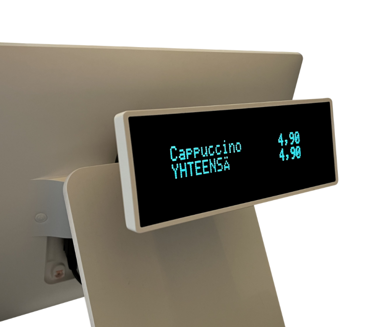 Tehosta kassapisteesi palvelukokemusta modernilla LCD-asiakasnäytöllä. Näytöltä näkyvät selkeästi kassaan rekisteröidyt tuotteet sekä lopullinen maksettava summa, kaikki reaaliajassa ja helposti seurattavassa muodossa.